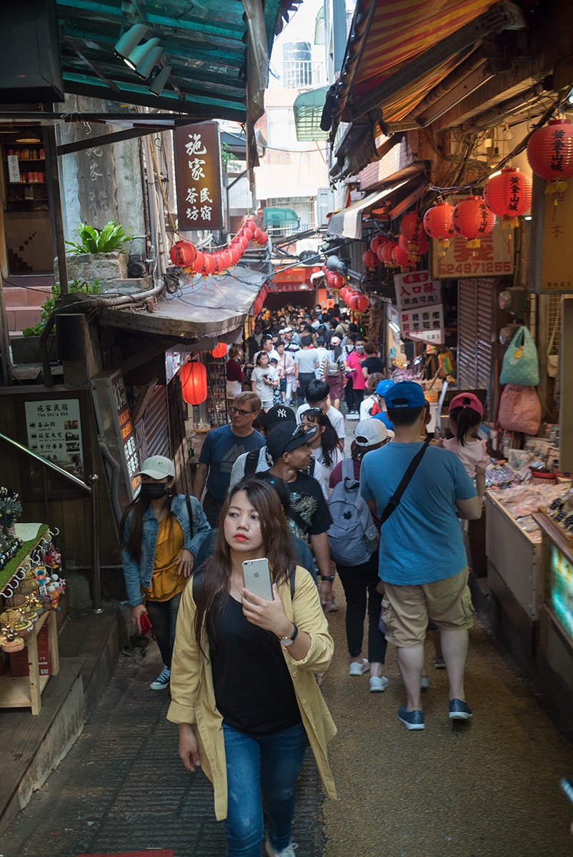 三日目の午後からは気になっていた九份へ。千と千尋の神隠しのモチーフになったとかならないとかで、ノスタルジーな提灯が灯った建物の写真がよく出回っている、が… その写真の場所に関して言えば、実際には主に 2軒のカフェ・レストランの奇跡の一枚的な… というかそのただ一箇所の写真が独り歩きしてしまったというのが感想。実際の九份は土産物屋や飲食店が並ぶ細い路地がメイン、更に奥へ進むと見晴らしの良いエリアに茶器屋が多くある。